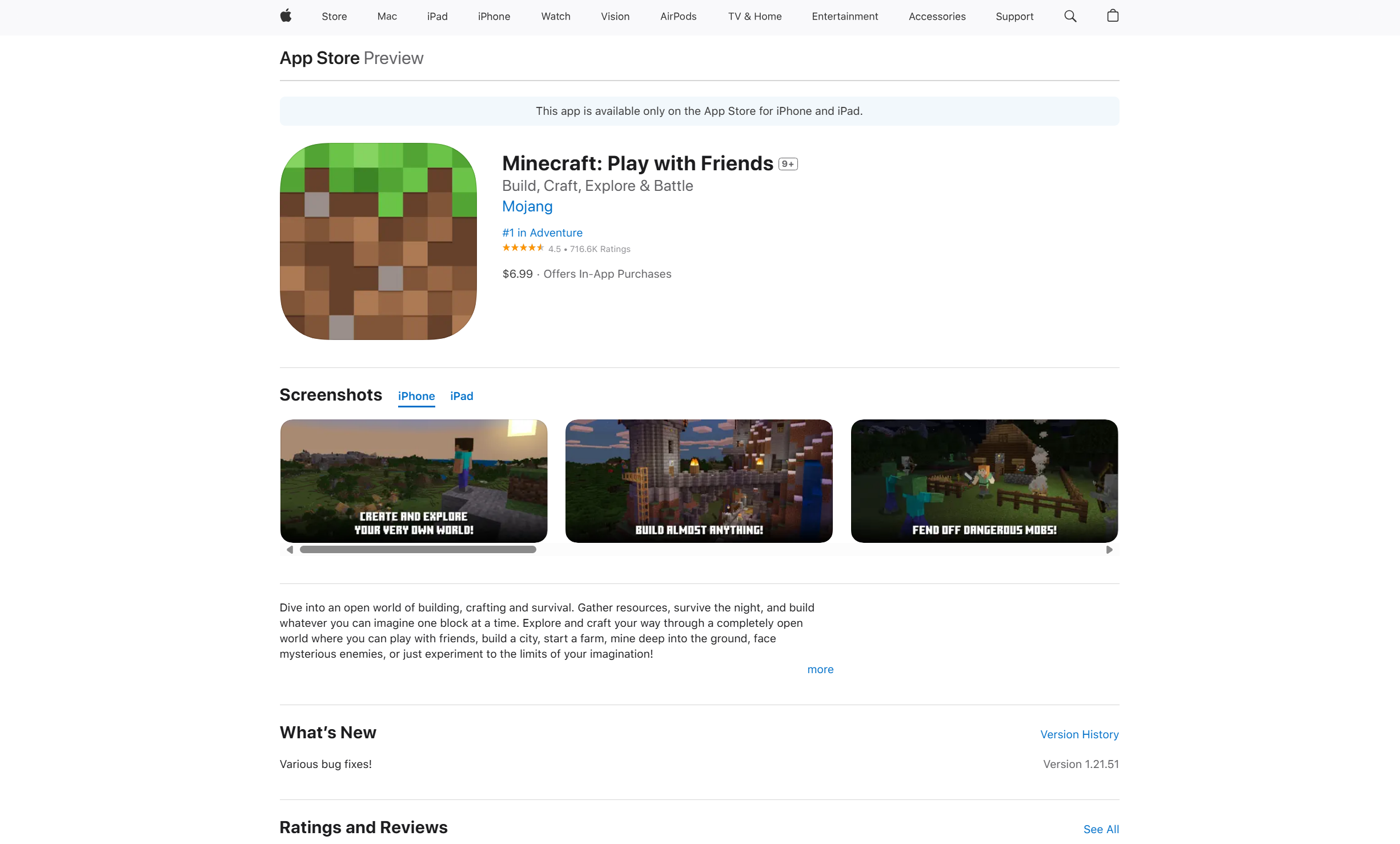 2. 在App Store内搜索[Minecraft], 进入应用详情页