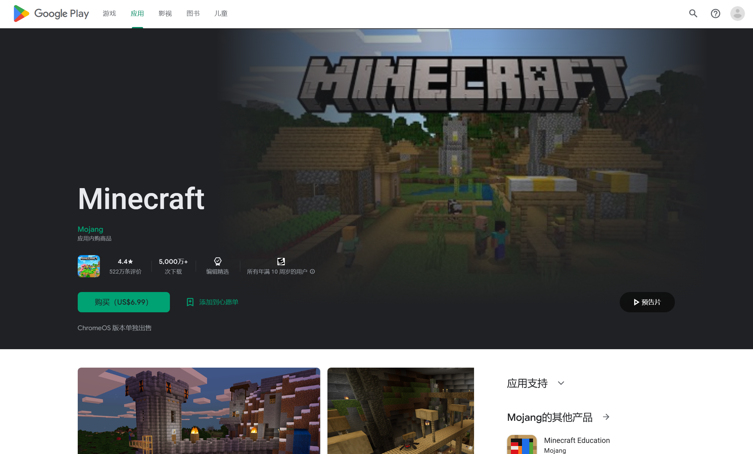 2. 在Google Play Store内搜索[Minecraft], 进入应用详情页