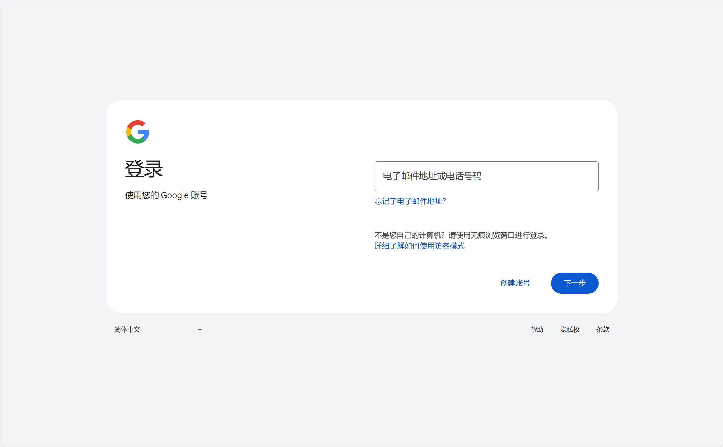 如果你已有Google账号, 请填写账号密码登录, 否则请根据引导免费注册.